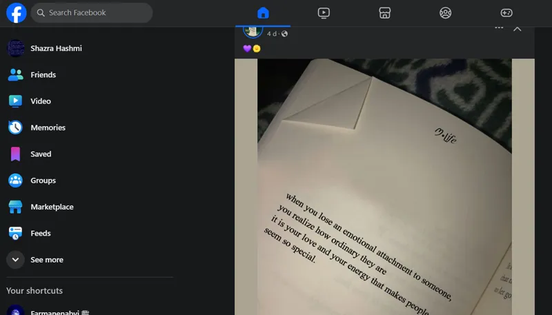 Below is an example of how the Facebook page looks when the dark mode is activated.